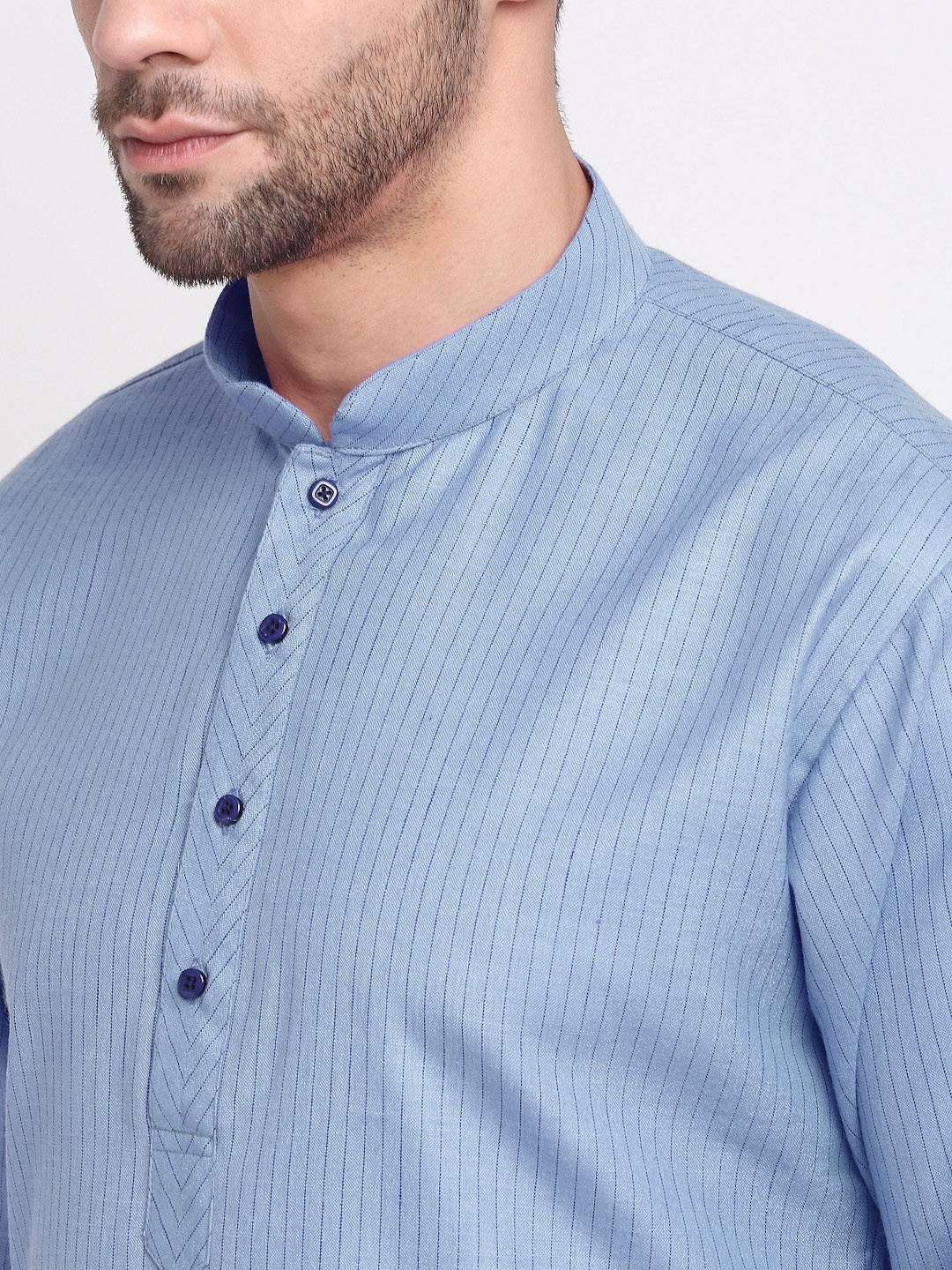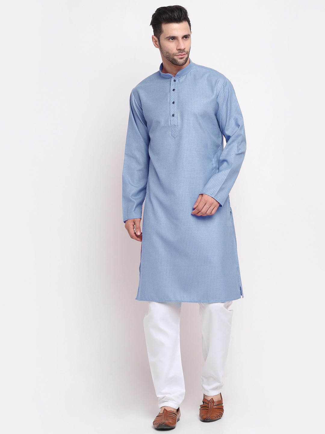Men Blue & White Striped Pure Cotton Kurta with Pyjamas